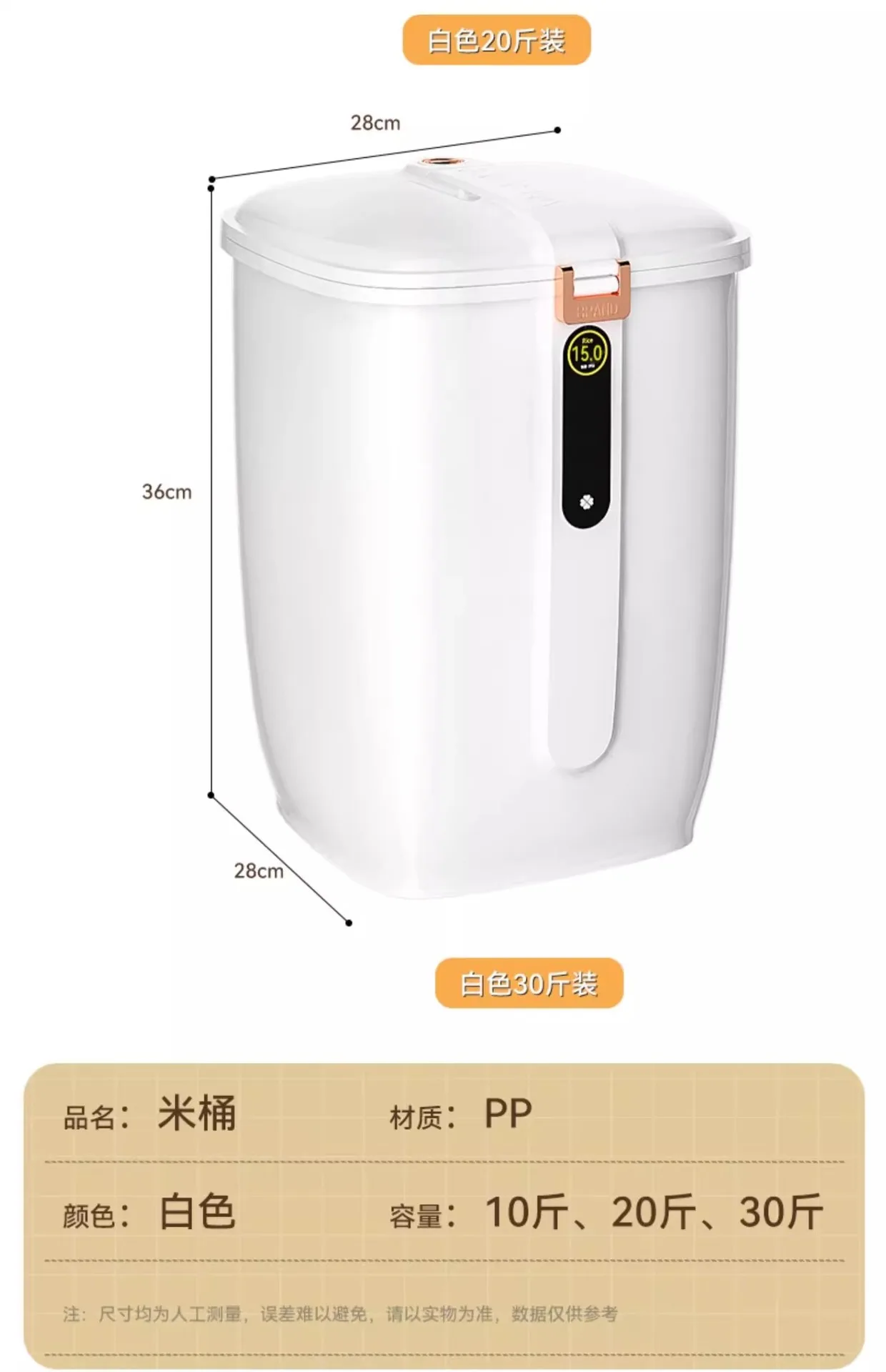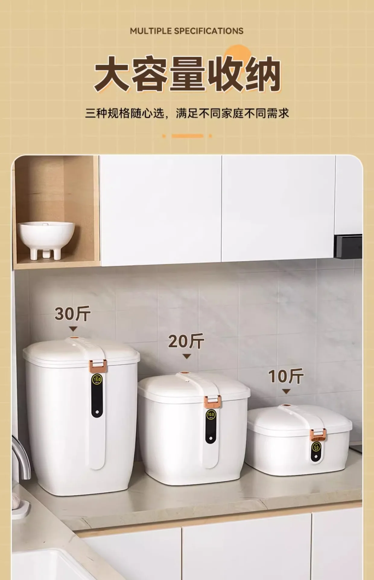 Food-Grade Rice Storage Container for Home, Airtight Rice Bucket with Insect-Proof Moisture-Proof Flour Storage Bin