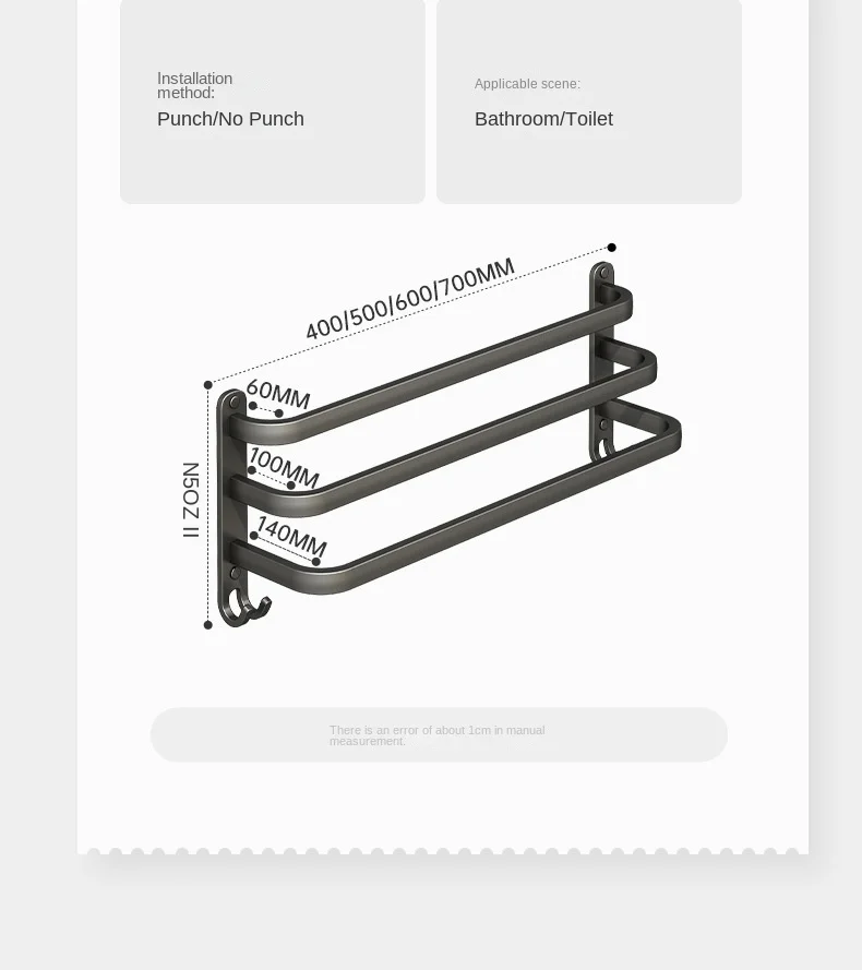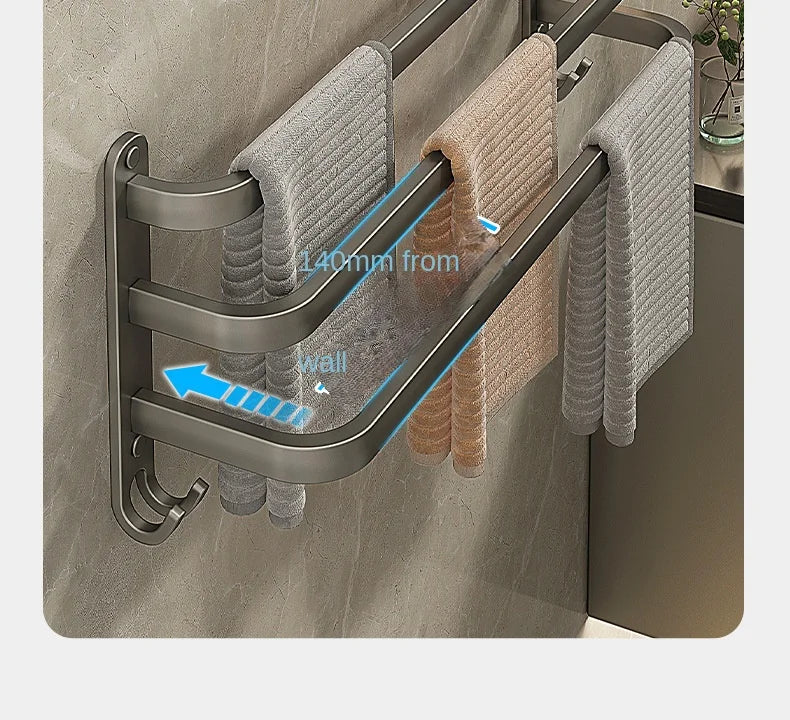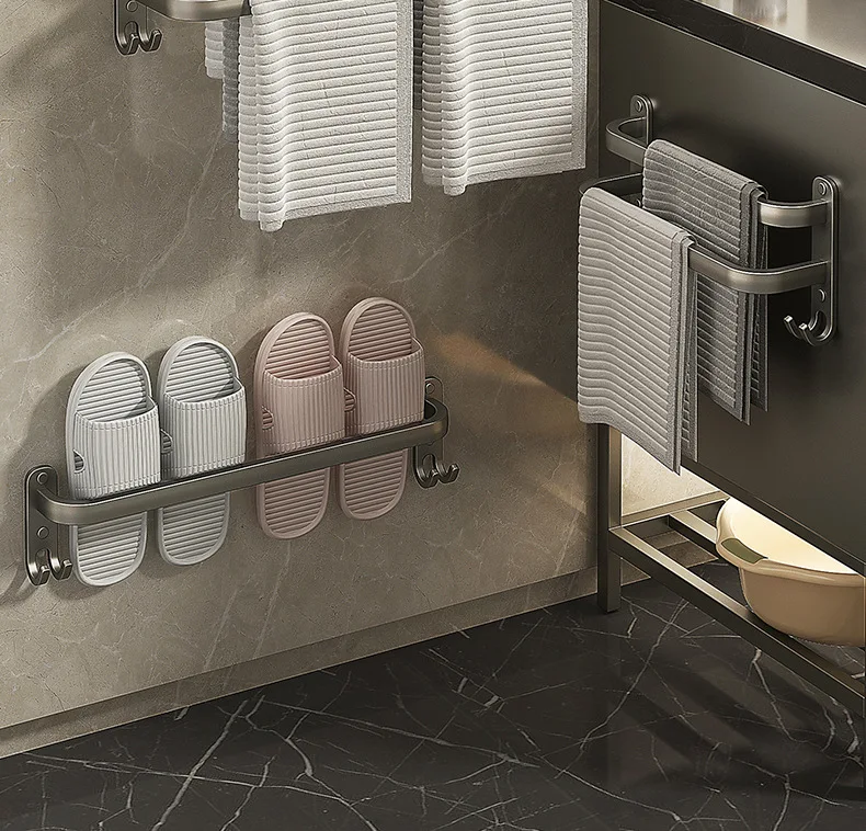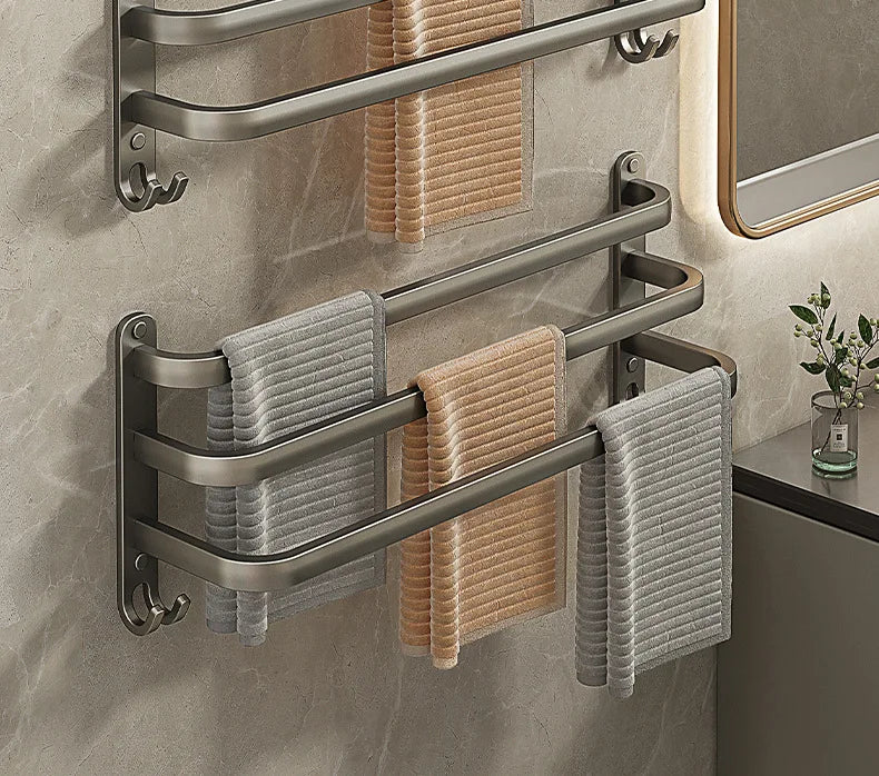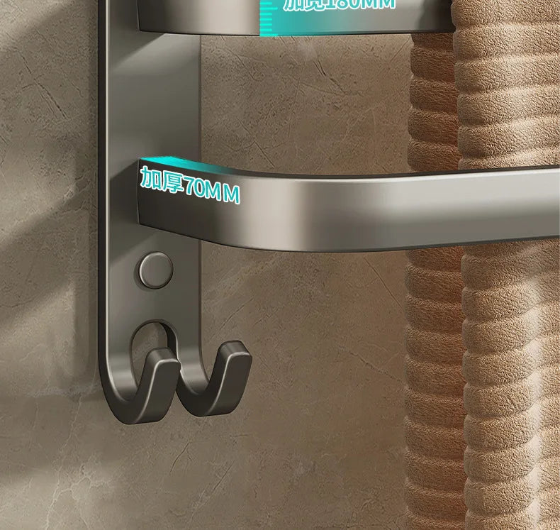 Gun Grey Three-Tier Wall-Mounted Bathroom Towel Rack Punch-Free Toilet Storage Rack Metal Material Similar to Dinnerware