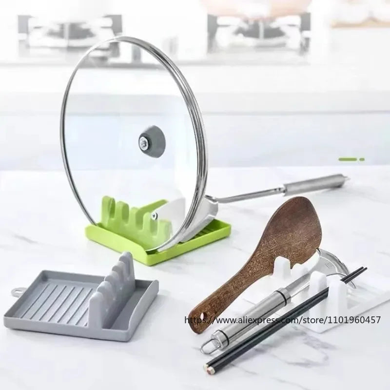 Simple Plastic Multi-functional Household Kitchen Spoon Rests Holder Pot Clips Organizer Rack Non-slip Pad for Spatula Pot Lids